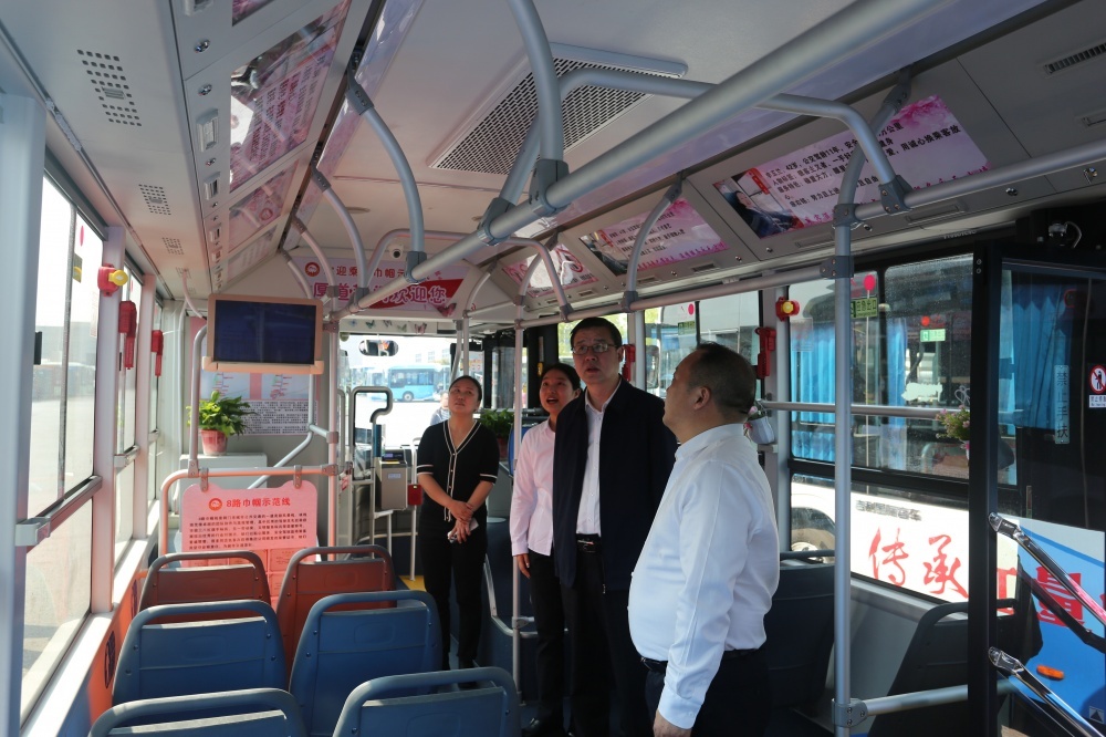 譚洪星一行先后調(diào)研客運南站公交場站、生態(tài)運動公園公交首末站、市公交集團機關(guān)等運營及管理情況。